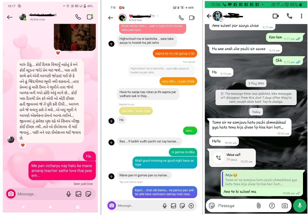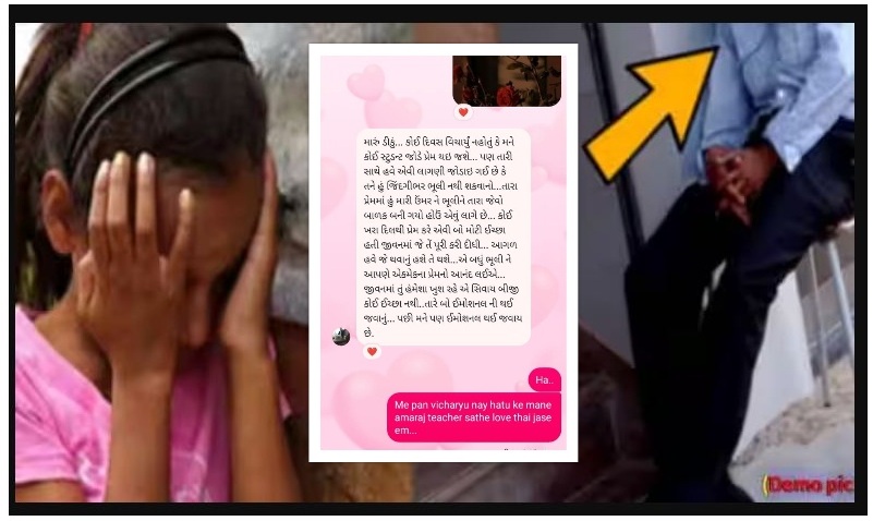 તાપી જિલ્લાના સોનગઢ તાલુકામાં આવેલ ગામની પ્રાથમિક શાળામાં લંપટ શિક્ષકની કરતૂત સામે આવી છે. જેમાં શિક્ષક અને વિદ્યાર્થીની વચ્ચેની વોટ્સઅપ ચેટ વાયરલ થતા સમગ્ર મામલો પ્રકાશમાં આવ્યો છે. સૌ પ્રથમ સગીરા અને શાળાની બદનામીના ડરે ગ્રામજનોએ લંપટ શિક્ષકને સમજાવ્યો હતો.પરંતુ શિક્ષકે પોતાની લંપટ લીલા ચાલુ રાખતા જિલ્લા પ્રાથમિક શિક્ષણ અધિકારી રજૂઆત કરવામાં આવી હતી.